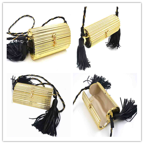 | Model NO.: | Earthly gold Solid color Messenger bag evening bag with black pu leather tassel |